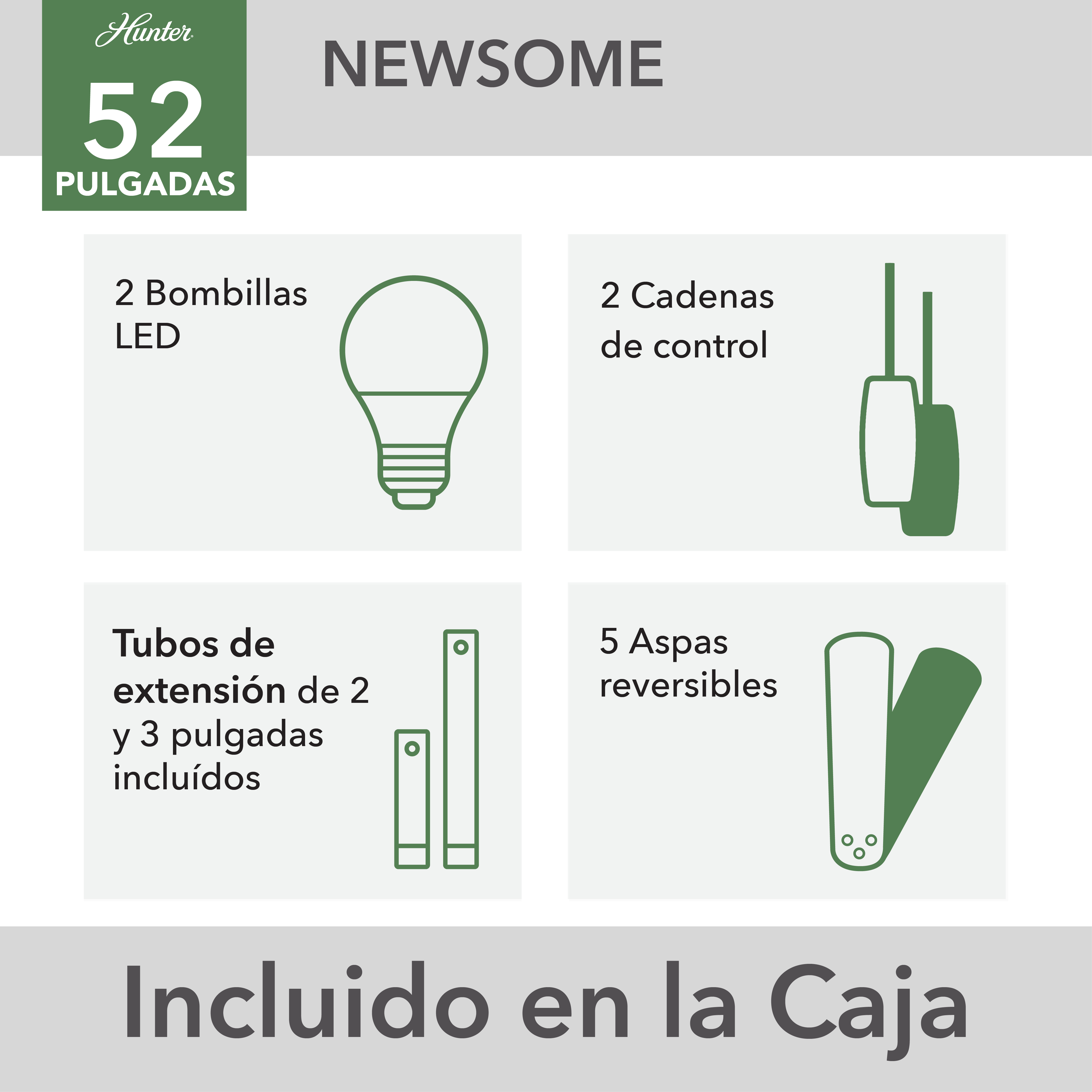 Con su apariencia encantadora, el ventilador de techo tradicional con luz Newsome complementará su estilo de diseño informal. Los detalles de líneas limpias en todo el cuerpo del ventilador y las aspas trabajan juntos para crear un diseño coherente que se adaptará a cualquier espacio estándar o grande. La hermosa lámpara tipo tazón brinda el ambiente ideal, mientras que las aspas de 52 pulgadas funcionan con un motor WhisperWind® de tres velocidades que brinda un movimiento de aire superior y un rendimiento silencioso para que obtenga toda la potencia de enfriamiento que desea sin ruido. La colección Newsome le ofrece la libertad de elegir entre muchos tamaños, kits de iluminación y otras opciones diferentes para mantener una apariencia uniforme en cada habitación de su hogar.