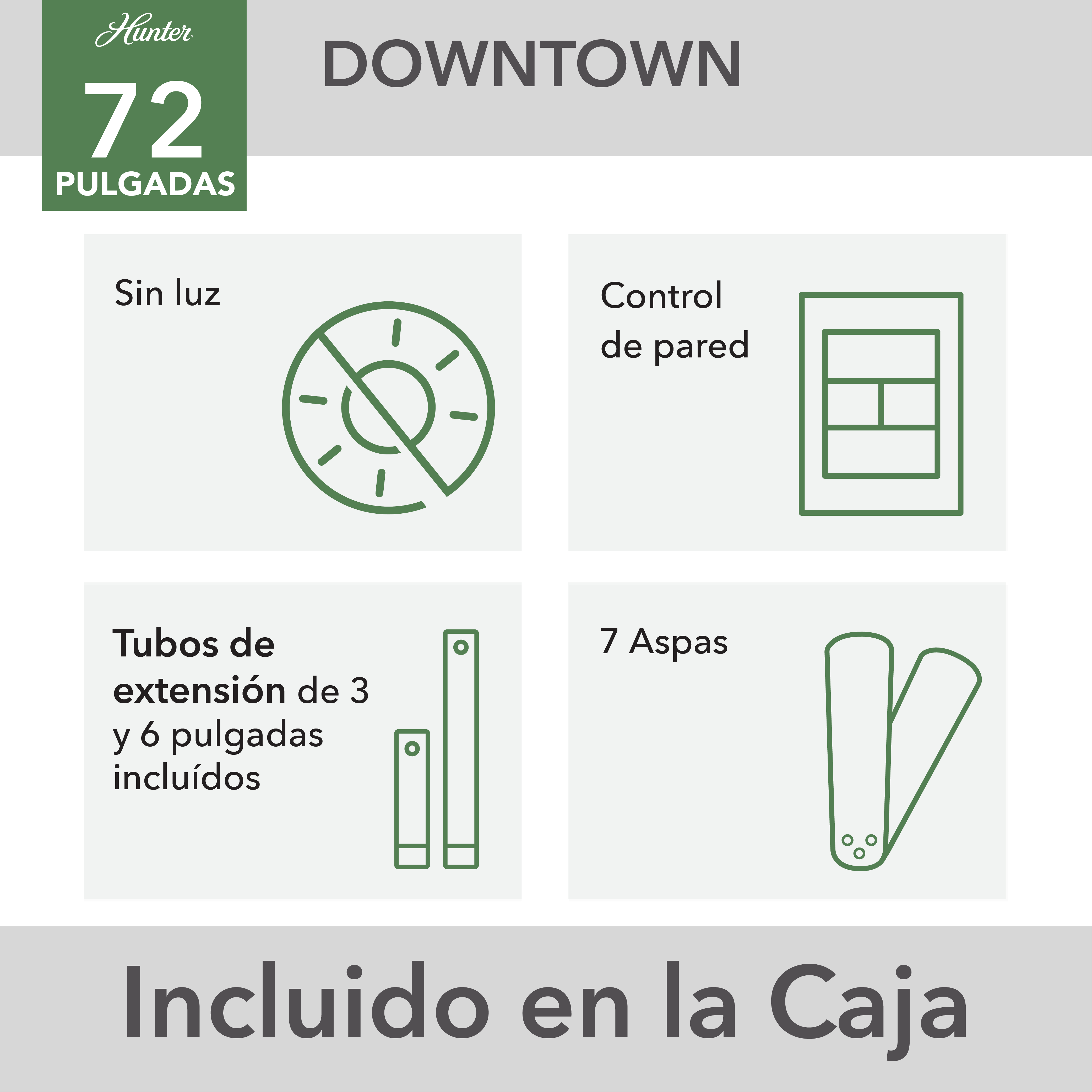 Crea un punto focal. Con sus elegantes acabados y sus amplias aspas, el ventilador de techo Downtown de 72 pulgadas llama la atención en sus grandes espacios interiores y exteriores. Este ventilador de techo combina estilos moderno e industrial para formar un accesorio inolvidable. Además, su diseño limpio lo convierte en el complemento perfecto para todos tus espacios, independientemente de su estilo.