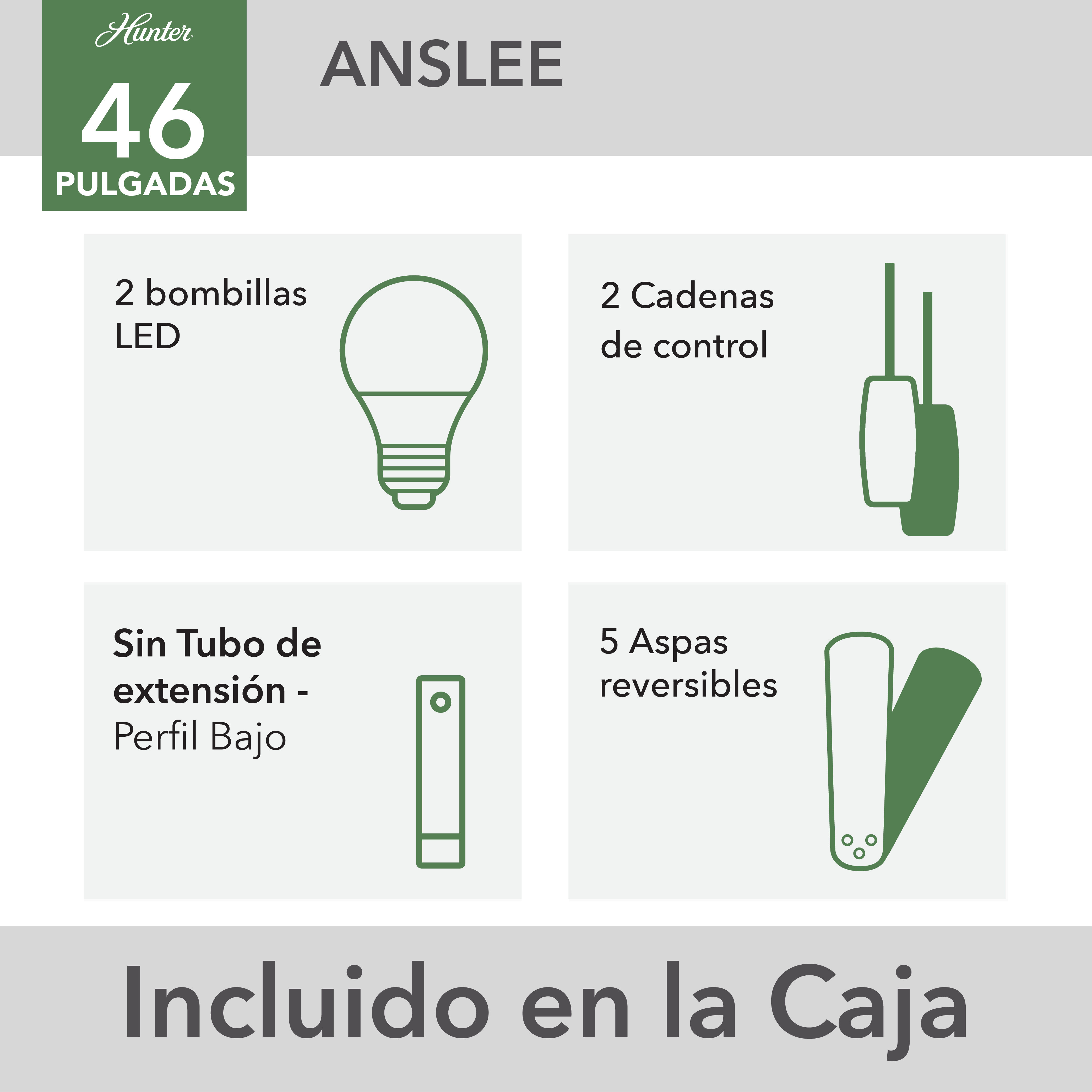 Con cuatro acabados para elegir, el ventilador de techo de perfil bajo Anslee es el acento perfecto para el estilo de diseño interior contemporáneo de su habitación pequeña o de tamaño estándar. La carcasa de perfil bajo está especialmente diseñada para encajar a ras del techo y es ideal para su uso en habitaciones con techos bajos. Disfrute de un control total para crear la atmósfera perfecta con nuestros focos LED de bajo consumo. El motor WhisperWind® reversible de tres velocidades ofrece un movimiento de aire ultrapotente con un rendimiento silencioso para que obtenga la potencia de enfriamiento que desea sin el ruido que no necesita.
